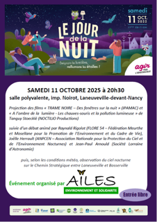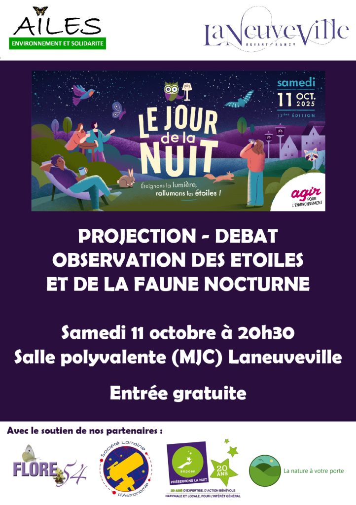 J’ai animé une sortie biodiversité nocturne pour l’association AILES de Laneuveville devant Nancy lors de la manifestation «le jour de la nuit » : explications sur différentes espèces vivants la nuit, présentation de la voûte céleste, présentation des rapaces nocturnes, écoute de leur chant; observation des épeires des ponts….