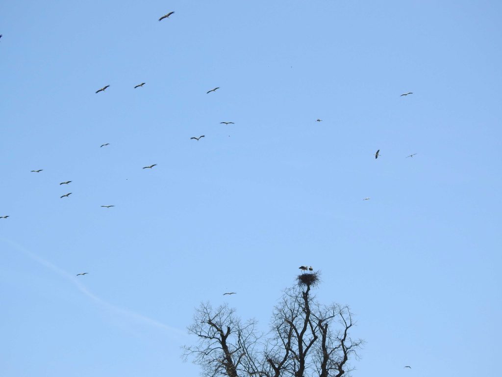 Une belle sortie pour cette bande d’amis, ciel bleu, soleil, anémones pulsatilles, florilège d’oiseaux et à notre retour à Laneuveville-devant-Nancy, une trentaine de cigognes tournoyaient au dessus du couple qui couve