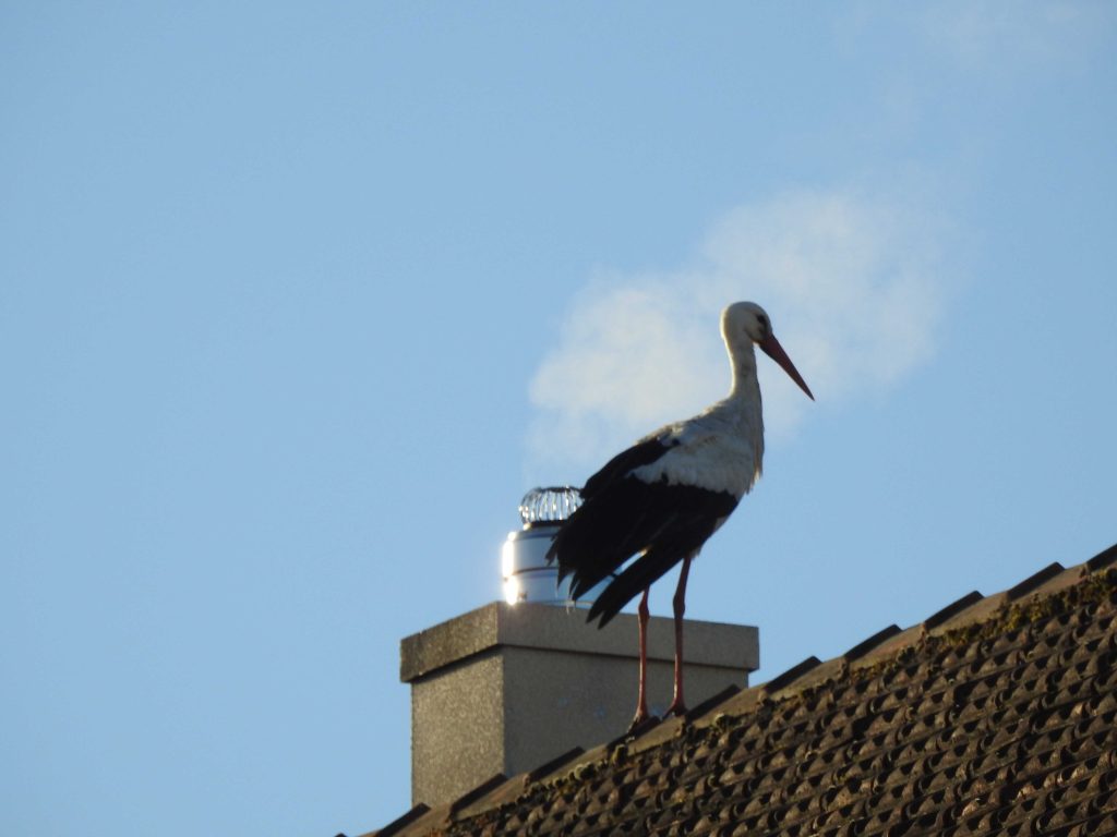 Une trentaine de cigognes au dessus du nid